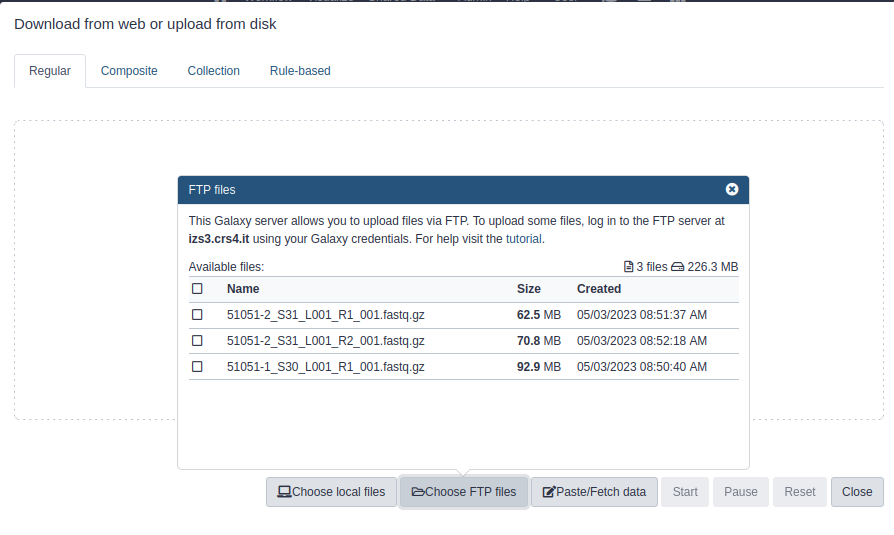 - the instance’s FTP server name (e.g. izs3.crs4.it, usegalaxy.org, ftp.usegalaxy.eu)