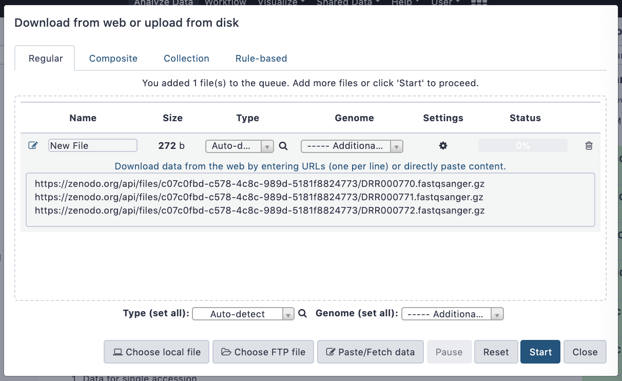 Getting data into Galaxy