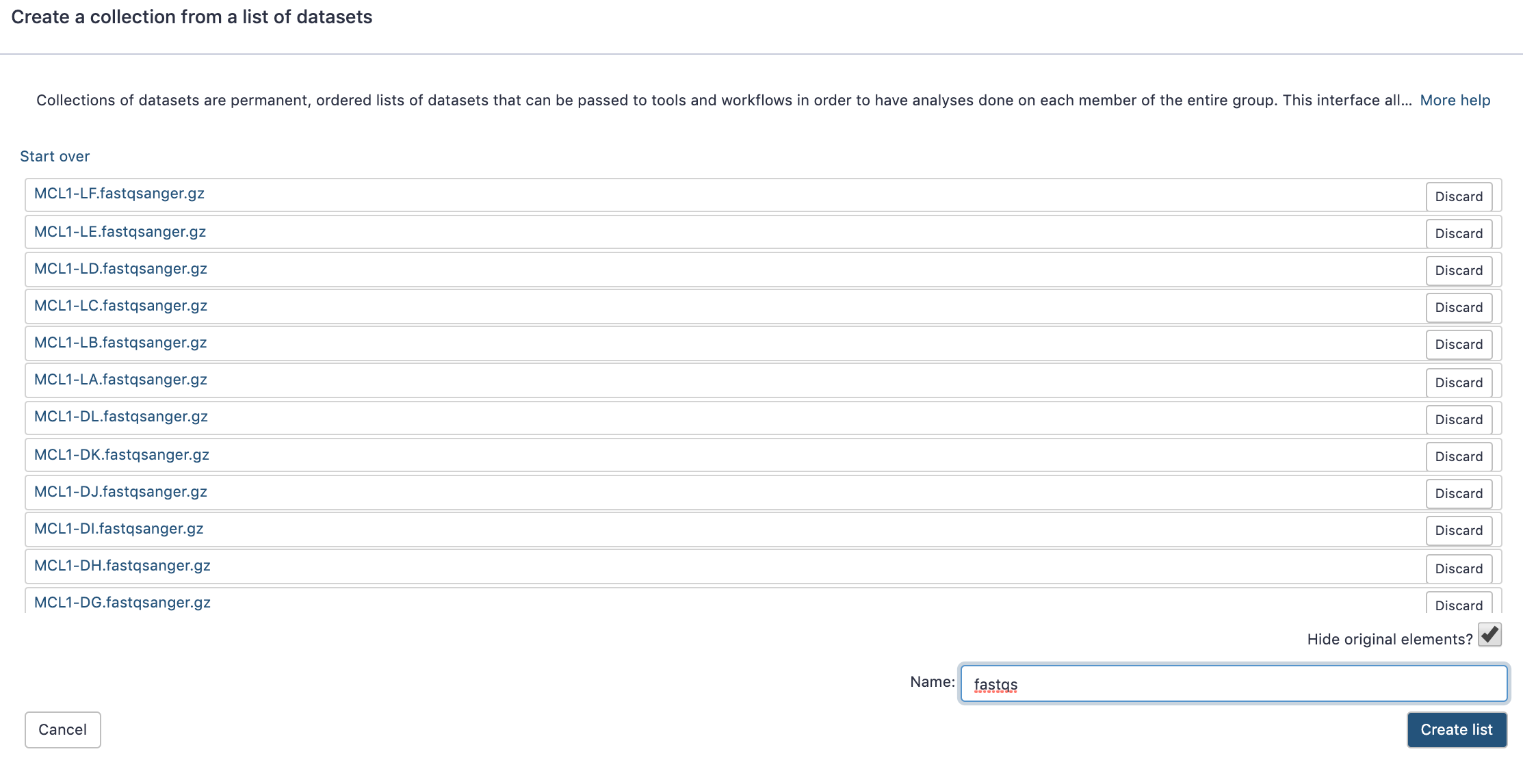 - Datatype (e.g. FastQ, VCF, BAM, tabular, ..)