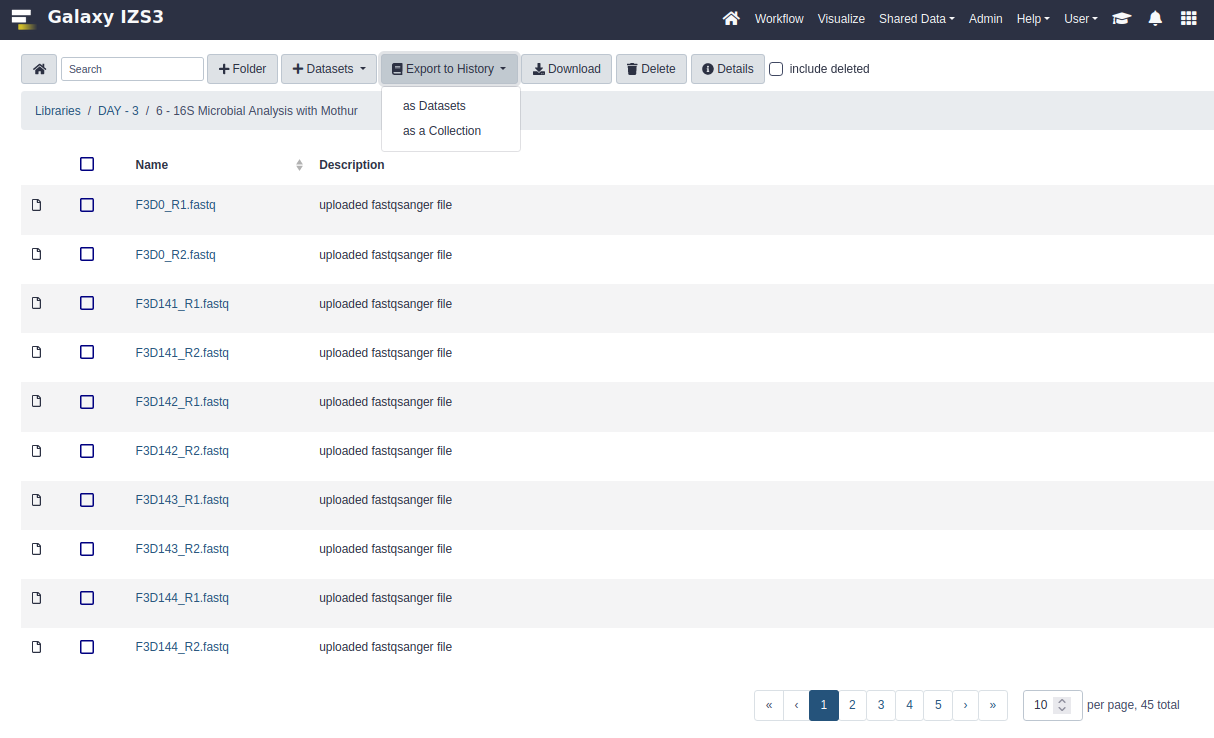 Import from a Galaxy Data Library