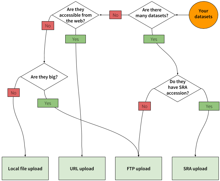 - Many people are very comfortable using FTP to upload large datasets and you can sometimes resume interrupted uploads.
