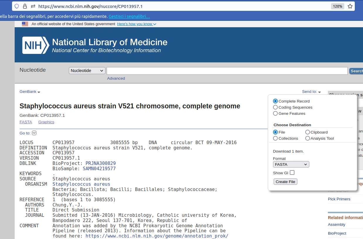 For this tutorial, we will use sequences from different strains of Staphylococcus aureus: