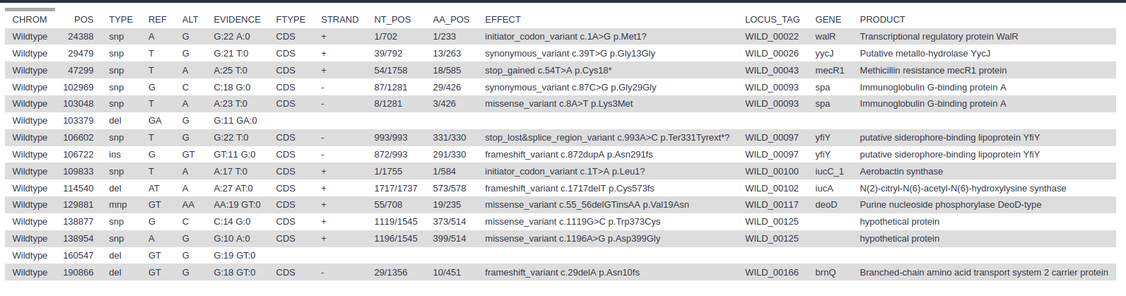 As our reference genome had annotations, we could see what effect the changes have on the features as annotated in the reference and therefore make inferences on the possible changes to the phenotype.