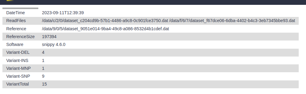 outdir: A tarball of the Snippy output directory for input into Snippy-core if required