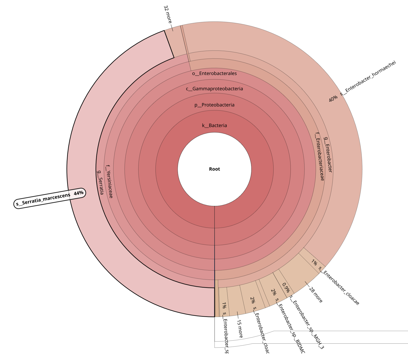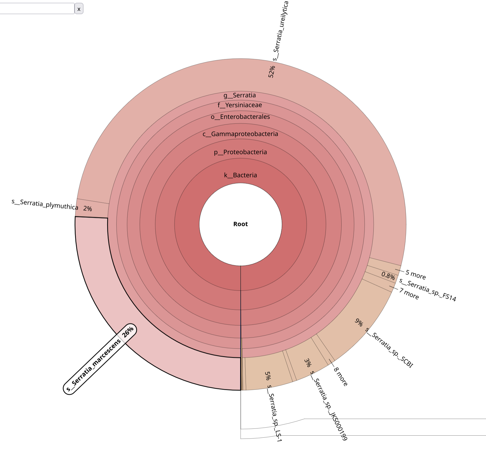 BrackenKrona pie chart Tool with the following parameters: