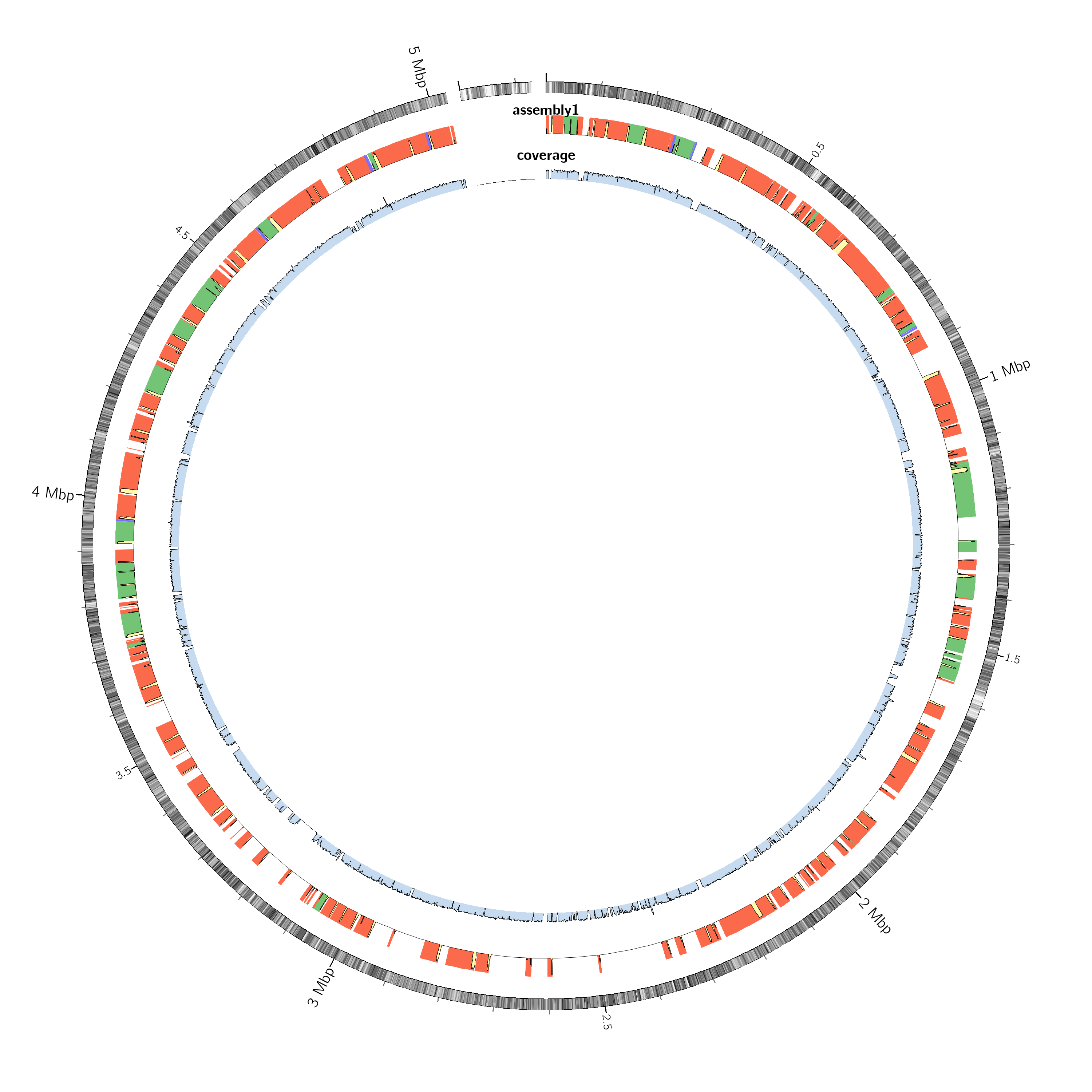 QUAST can also generate a Circos plot showing how the assembled contigs align to the reference genome.