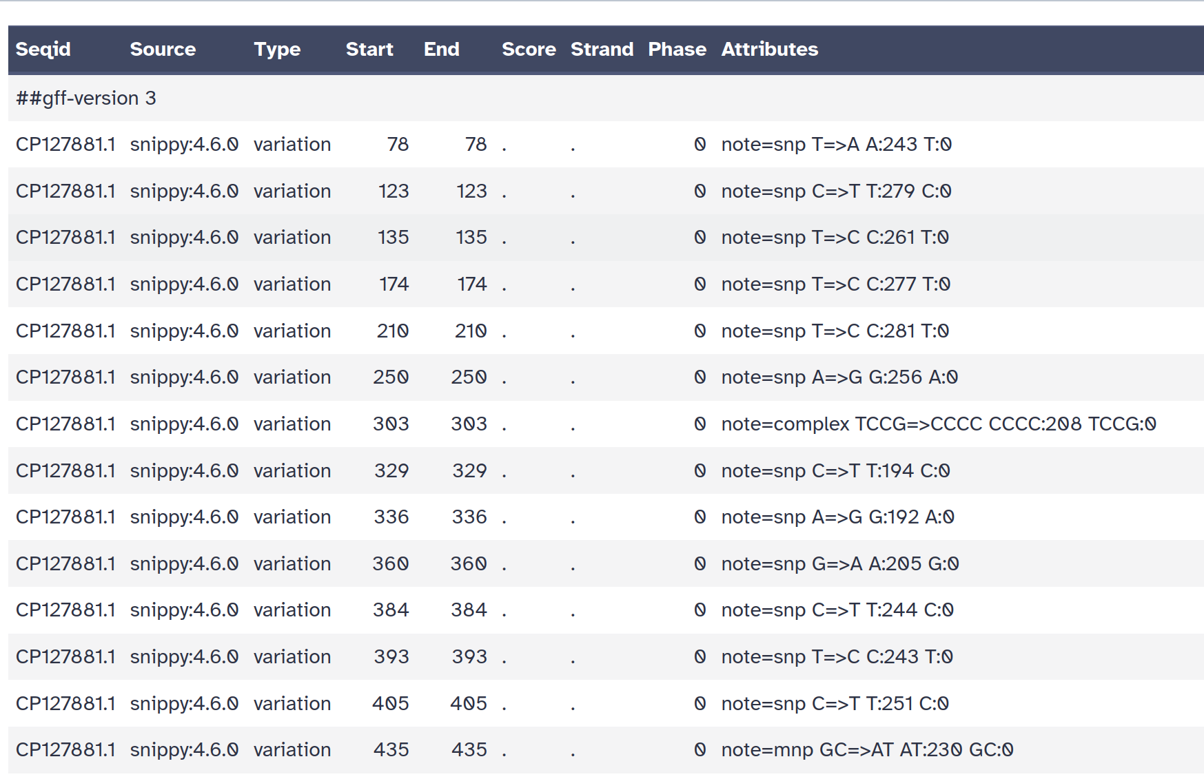 snps gff file: The variants in GFF3 format
