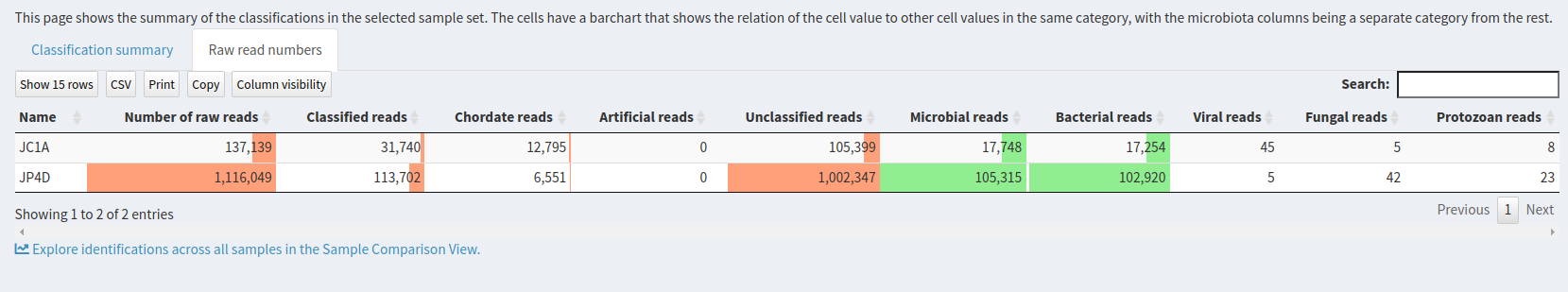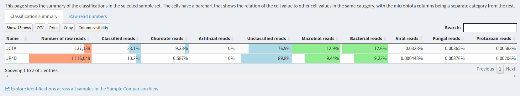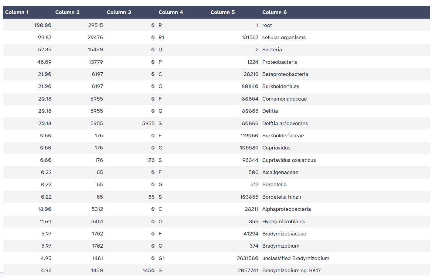 Kraken2 will create two outputs for each dataset: Classification and Report