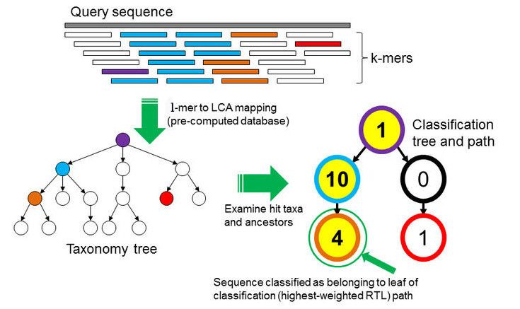 for comparison. From all the genomes in the database, where a specific k-mer is found, a lowest common ancestor (LCA)