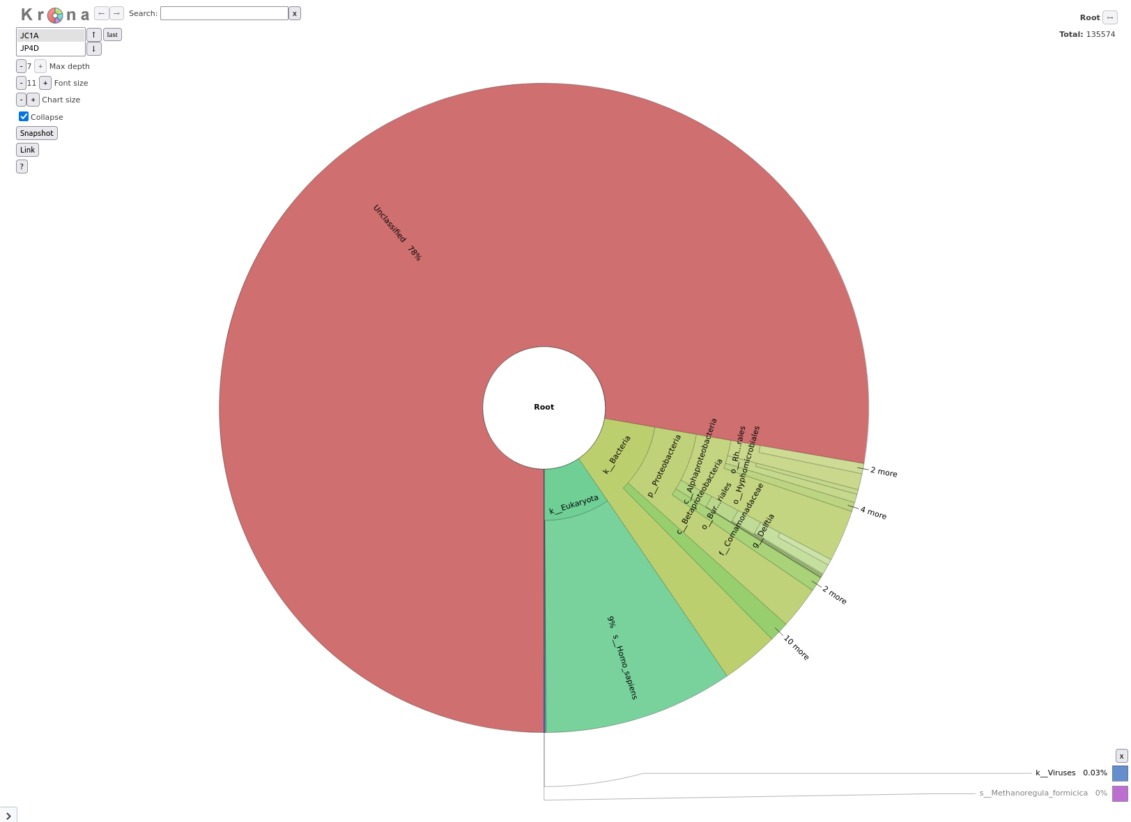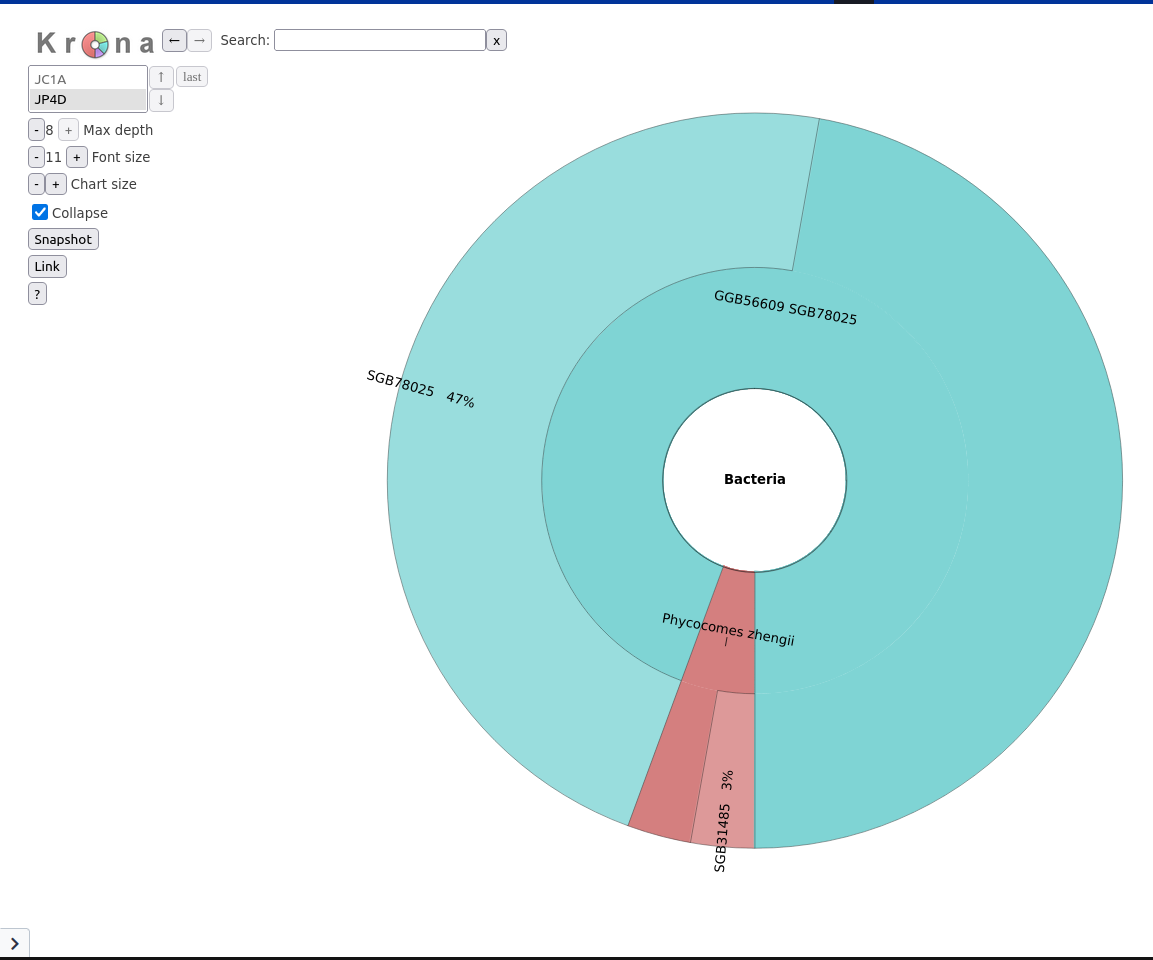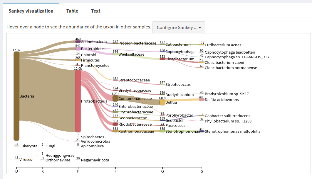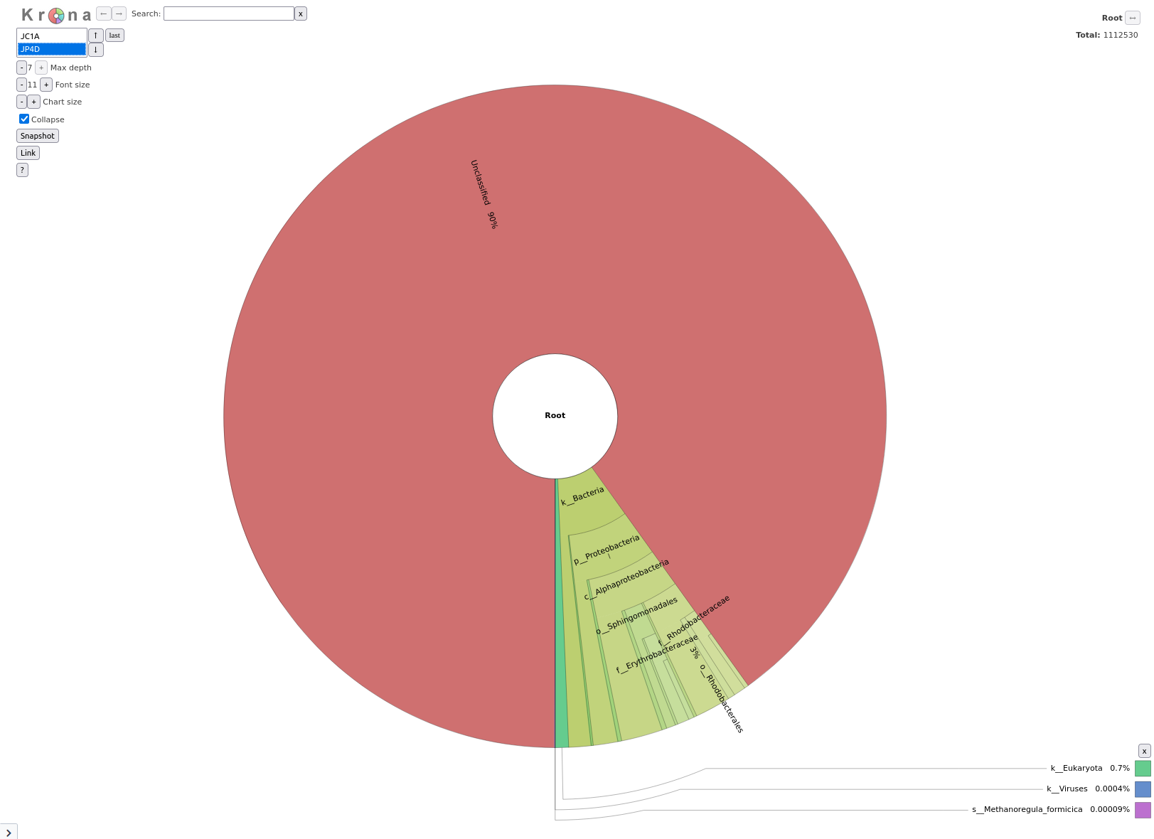 Sample in the left panelJC1A in the Select sample drop-down on the topThe first view gives a Sankey diagram for one sample: